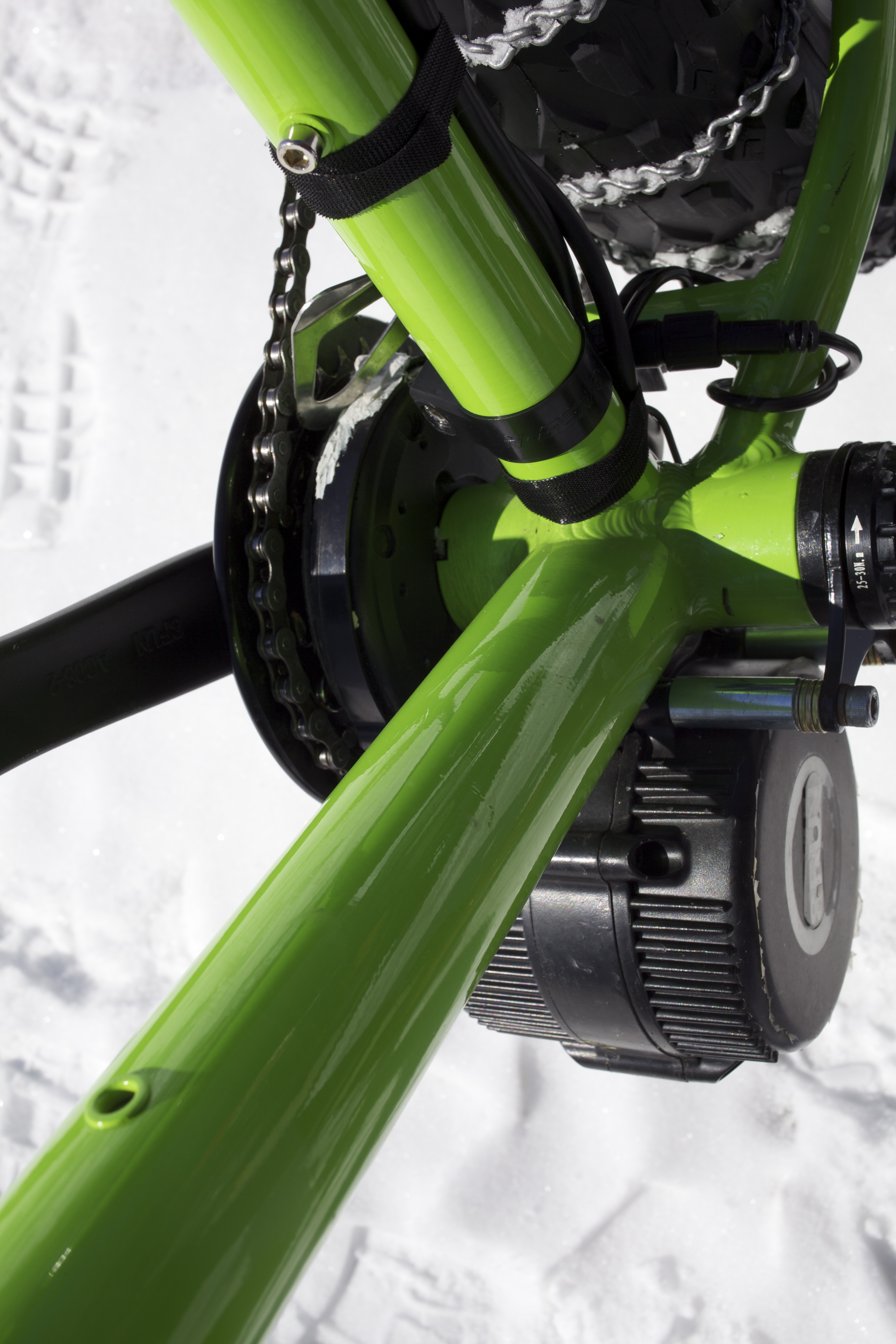 The only real complaint I have about this bike is the tall stand-over height. When riding single-track in deep powder when your front wheel falls off the trail it can often sink over a foot deep into the soft powder. This means your crotch inevitably ends up getting slammed onto the top-tube as your foot sinks through the powder to try to find some solid ground. I much prefer the hydro-formed frame of the Boris X9 when single-track riding and I have to worry about having to put my foot down through a foot or two of powder.