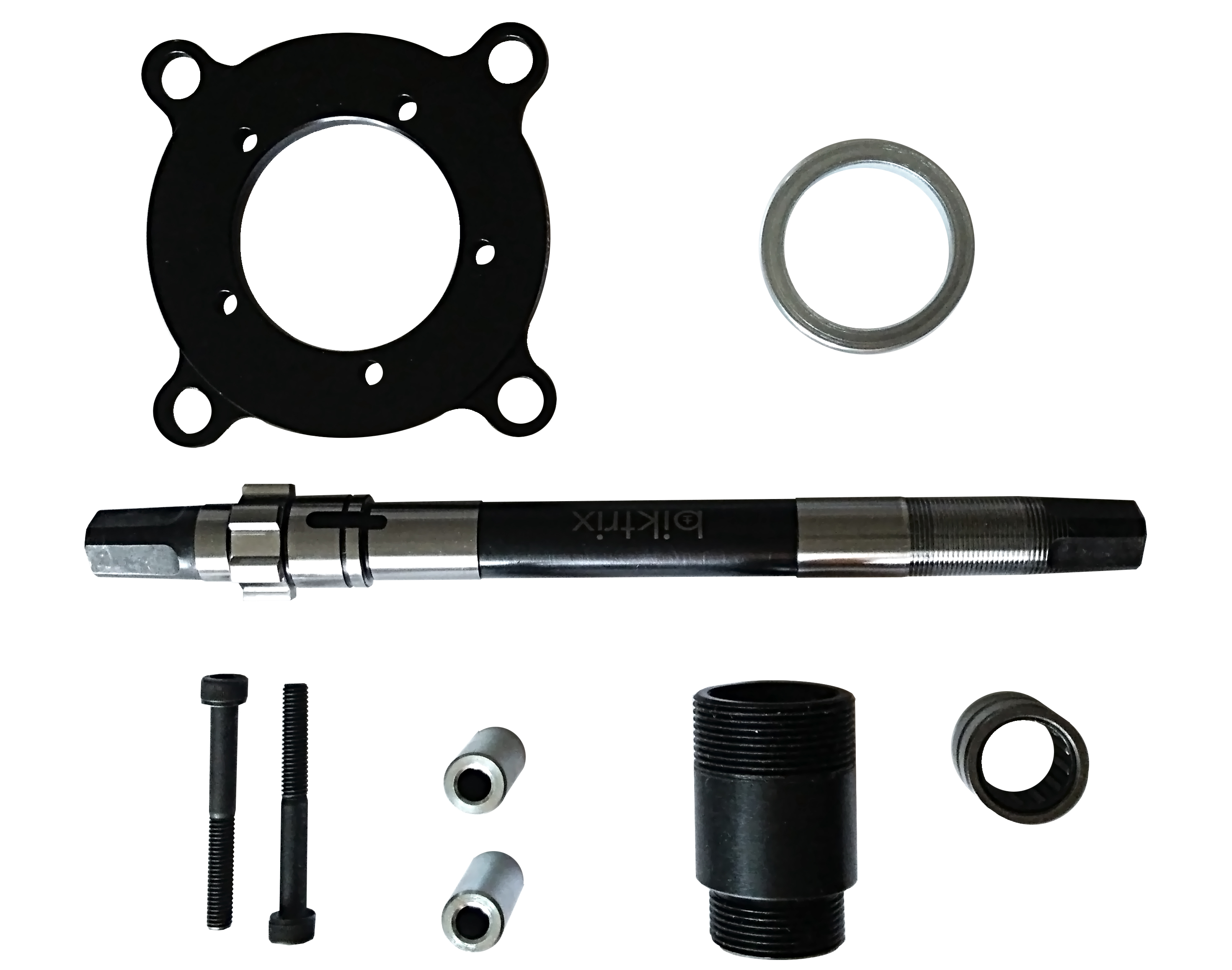 The Biktrix 100mm kit is a BBS02 with these parts already fitted and installed to fit a 100mm fat-bike bottom bracket. I took one apart and I can attest that their logo really is printed on the axle.