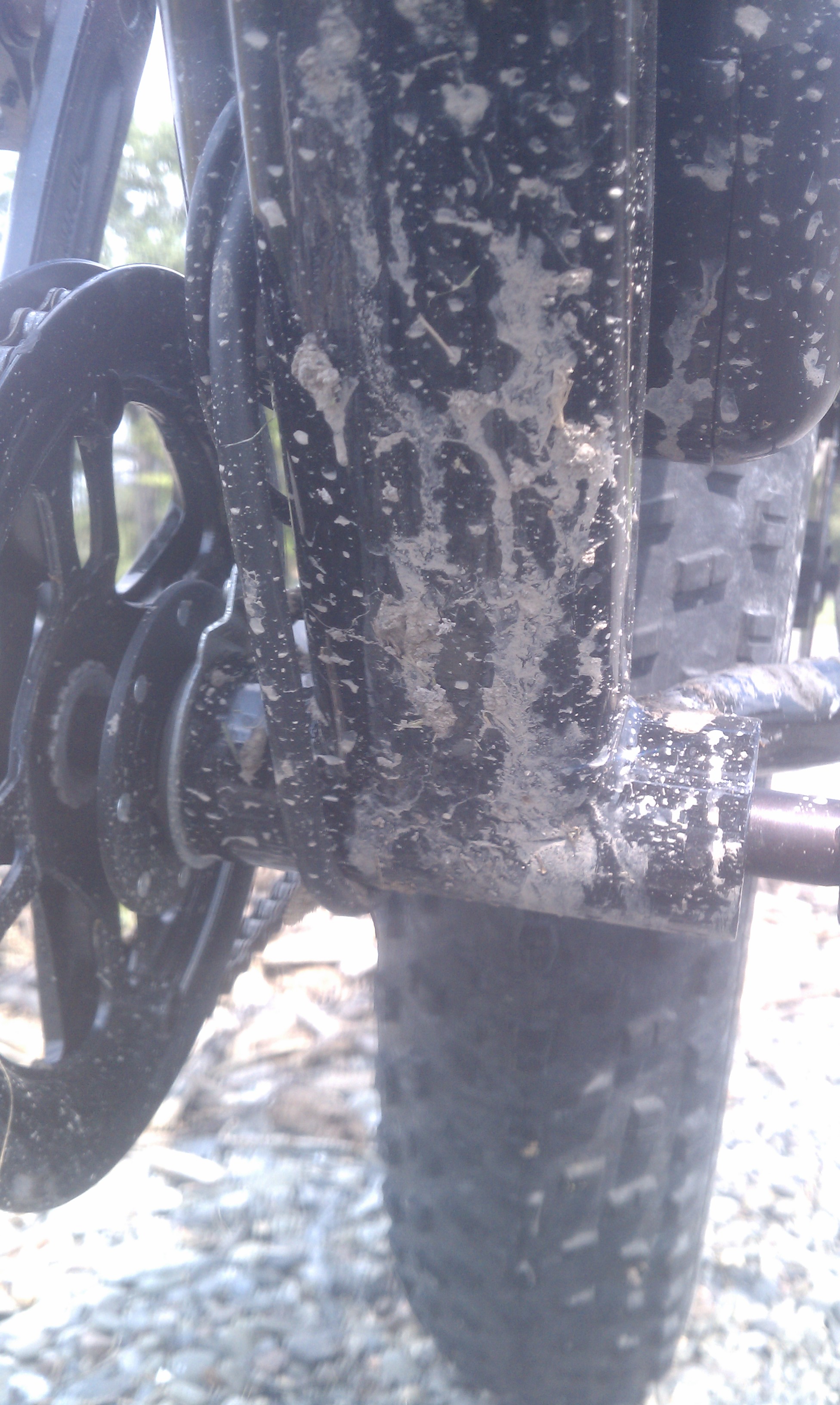 The tires are quite heavy and the tread pattern reminds me of the Panaracer Fat B Nimble which is one of my favorite tires for the price. How could I tell that the tires were heavy without taking them off and weighing them? The rotational momentum in the tires was pretty intense and I could even feel some gyroscopic procession with the wheels when moving at top speed. The last time I felt that was test driving a Walmart Beast with a Stokemonkey installed on it. When testing fat-bikes the thing that I keep coming back to is that the tires make all the difference in the ride. Going ghetto tubeless will save a little weight and make the ride feel much more cushy all around. Just swapping out the tubes with ultralight qtubes will probably save a pound or three. The tires have a little bit of self-steer at around 10psi but it wasn’t distracting. I would recommend that people use the max tire pressure of 20psi to maximize their range.