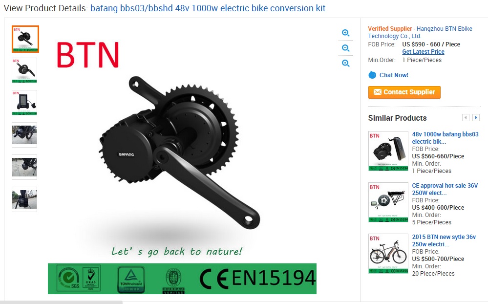 There is one vendor named BTN on Alibaba selling the BBSHD right now located here for between $590-660 that seems pretty legit. My guess is that if you order it they don’t have stock yet and it you ordered it today it still won’t ship for at least 2 more weeks. The price for one unit will be $660 but if you order a whole lot the price will drop. The unit ships with the C965 two button display but otherwise should be identical to the other drives purchased stateside (without any custom programming).