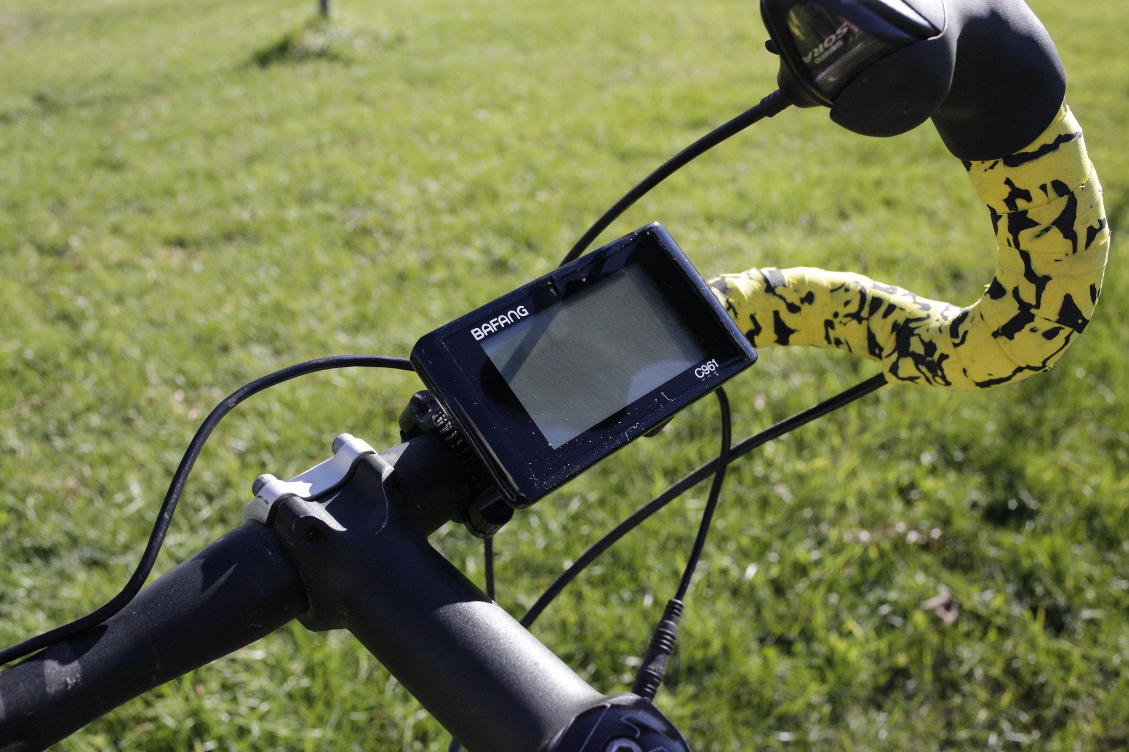 I ran into a few problems mounting the BBSHD drive unit on a road bike instead of a mountain bike. The + / – / Power button cluster on the C961 didn’t fit around the thicker handlebars so I could only put one of the 2 screws in. The throttle also did not fit properly onto the wider & curved road bike handlebars. I couldn’t find a way to mount the normal right-hand throttle on handlebars so it would be easy to use. Instead, I opted to use a left-hand throttle which actuates on a different axis than the normal right-hand throttle does. I had to remove the metal ring and then carve out some of the plastic with a mat knife in order to get it to fit on the handlebars. By alternating the use of a mat knife and some sandpaper, I was able to widen up the plastic hole enough to force it on to the handlebar end. In the end I was very happy with the results, but I have to admit that it looks pretty strange.