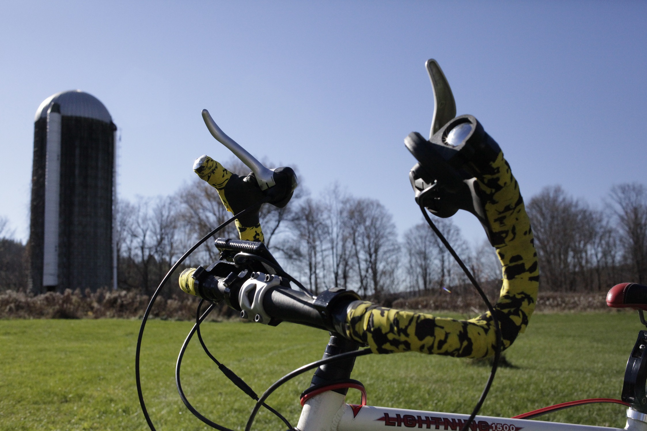 I realize that nothing is farther from a real fat-bike than my Death Trap 2000 build, but bear with me. About 8 years ago I thought I would buy some spandex grab some power bars and join the road-biking crowd (Insert gratuitous epic rap battle link here). I ended up buying a Dawes 1500 from Bike Island with a replacement carbon front fork for only $400 (they usually go for $550). Unfortudently I found out that I totally hated road biking and my ass looked fat in spandex, so the bike mostly just gathered dust in my barn. A couple of years ago I pulled it out and decided to switch the handlebars around to make it more comfortable to ride as I am 6′ 10″ and bending over that far is just incredibly painful for any real length of time. I ended up with a really cool configuration of the brake\shifters that make it look like a raging bull on a rampage. That marginally increased my interest in this bike for about a week. I think I even rode it to the voting booth once (true story). Everyone should vote, early and often.