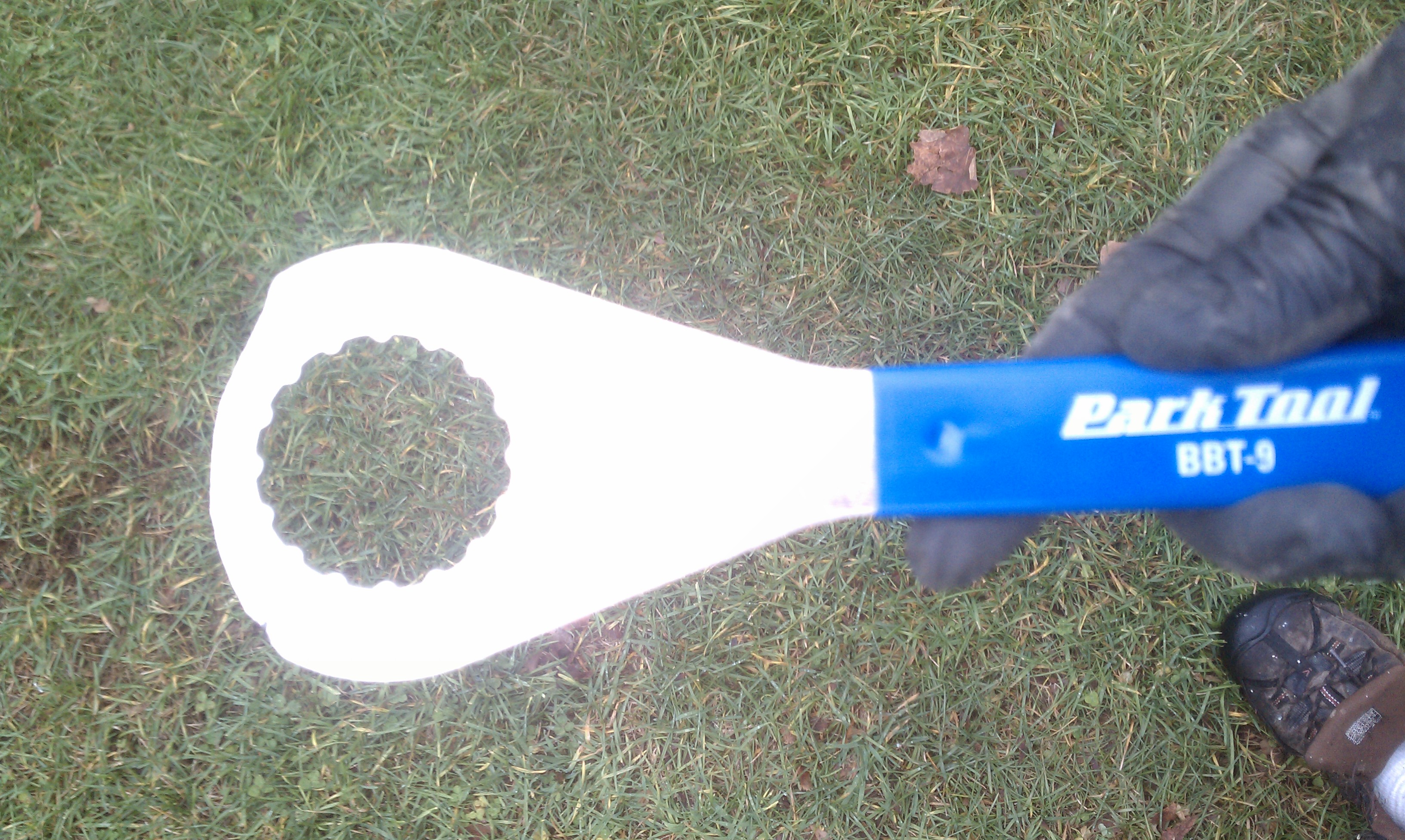 I also broke down and took the grinder to my BBT-9 Park tool so it would work properly to be able to tighten the final lock nut on the non-drive side of the unit. You can buy this tool on ebay for around $10 and is a necessary addition to your rusty bunch of bike tools.
