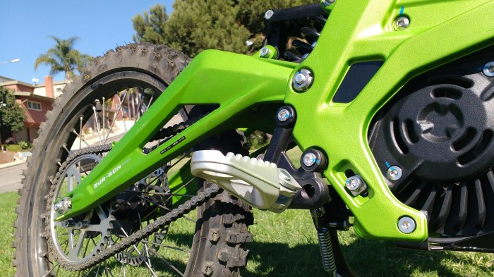 r1chardm – I think this bike from Sur-Ron will fit a niche market that isn’t necessarily for those looking for an electric dirtbike. This bike seem to be more like a hybrid between a dedicated downhill mountain bike and an electric pit bike. As someone who also rides dirtbikes, I’ve looked seriously at the KTM “Freeride-e”, which recently upped the power of their battery to give it a 1-2 hour run time at double its original power, which they’re claiming is equivalent to a 250 4-stroke. Then there’s Alta Motors’ “Redshift”, which has 450 weight with 250-like power. Some riders are winning races with this bike, and this is giving the Alta Redshift a fair amount of attention these days. Yamaha and Honda have already invested in concept e-bikes for dirt, so this is IMO, an eventuality. For me, I really like the idea of having MX tracks and/or trails in urban settings. So I’m in favor of the electric dirtbike. I already know there’s a market for them. My local KTM dealer sells the Freeride -e XC model in limited quantities now, and he’s been approached by Alta Motors to sell their bikes as well. If these bikes provide more opportunities for riding, they’re a good thing IMO. – Cheers.