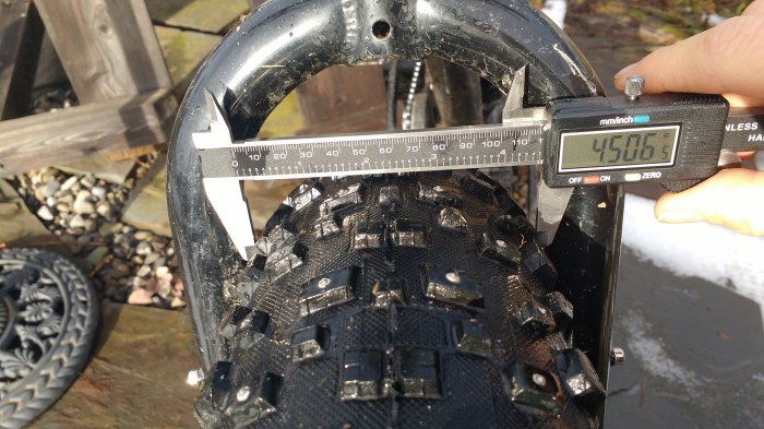 Rolling Resistance – 3.5 : Very little rolling resistance for a tire this fat with studs. Shocking really.