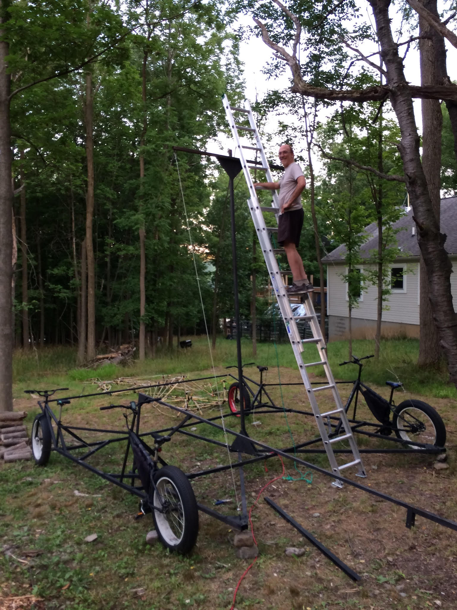 About a year ago I wrote this article about why you should never take your ebike to Black Rock City unless you were building an incredibly awesome Mutant ebike. A couple of my friends, Doug Shire and Laurence Clarkberg (look mom, I really do have friends), wasted thousands of dollars and hundreds of hours of time to essentially bring one of my really bad ideas to life. I’ve been to Burning Man at least 10 times and five of those burns I have spent the entire burn building large articulated puppets that I carried on my back around the playa. The biggest one was 43′ tall (true story) and that was just no fun at all so I’ve essentially given up on trying to carry anything bigger on my back. I had the idea to build a 4 person ebike mutant vehicle and hang a 30’+ bamboo led covered puppet on it, but in all honesty, I never had the motivation, capital, and inclination to make it happen. One of my best friends did have all three of those things, so with many lost hours spent in the basement of the Ithaca Generator (a group of cool people who make stuff) Doug and Larry built this creation then got it all the way from NY to Nevada for this year’s burning man. Since I couldn’t be there this year (I went to Denmark for 2 weeks instead) they called the Man Alive puppet ‘Karl’ out of respect for my vision and contribution to the build (which wasn’t much). This article talks about the process of building this piece of art and why you should build a mutant art ebike installation instead of building a mutant gas-powered vehicle like every other mutant vehicle on the playa.