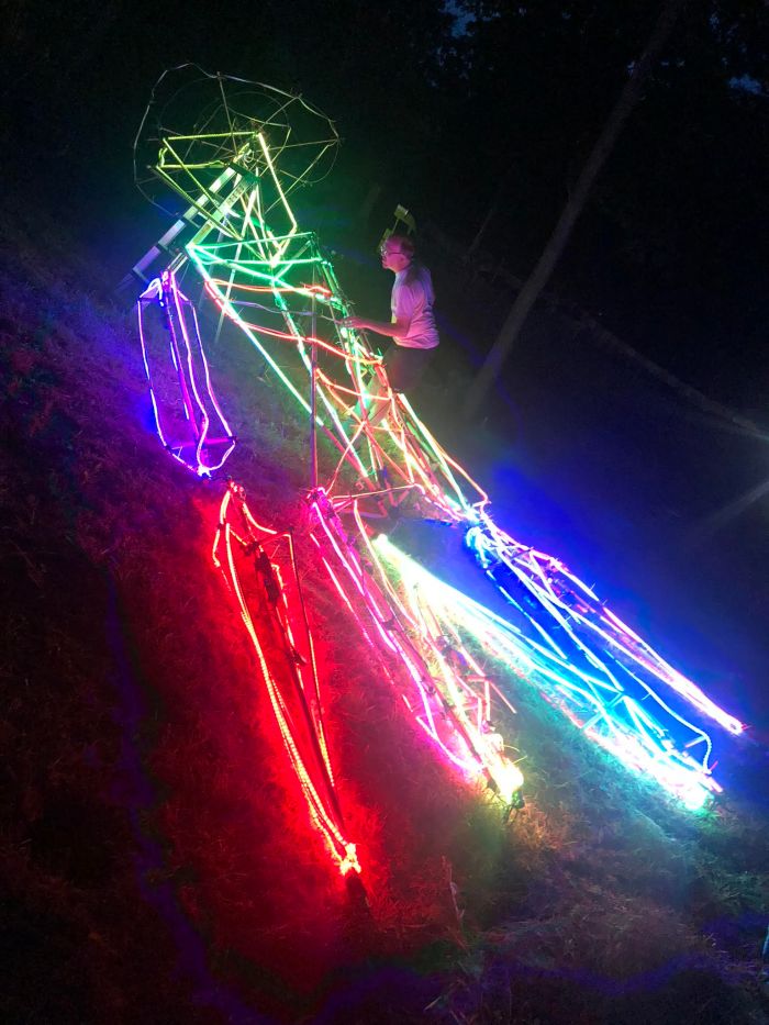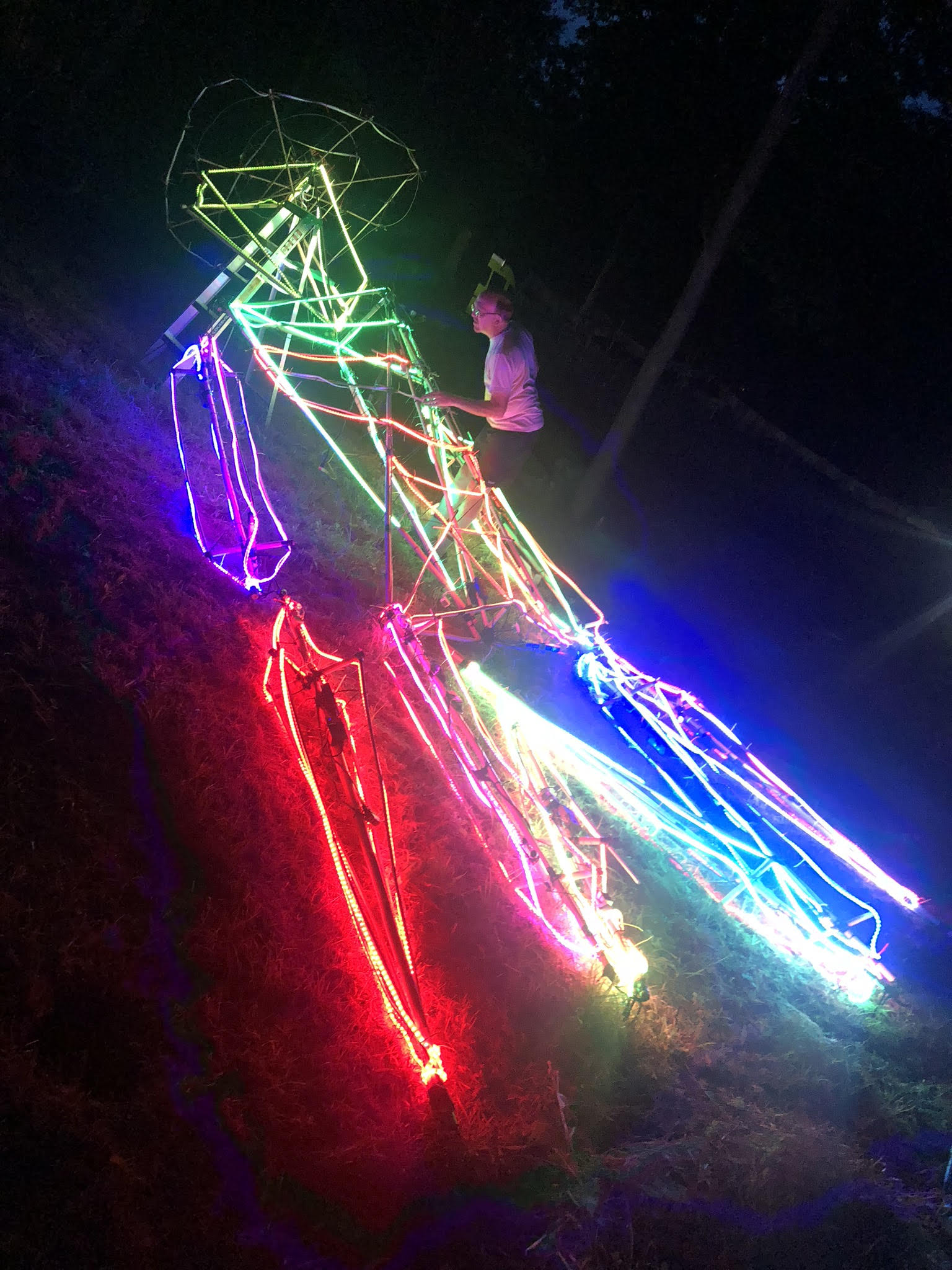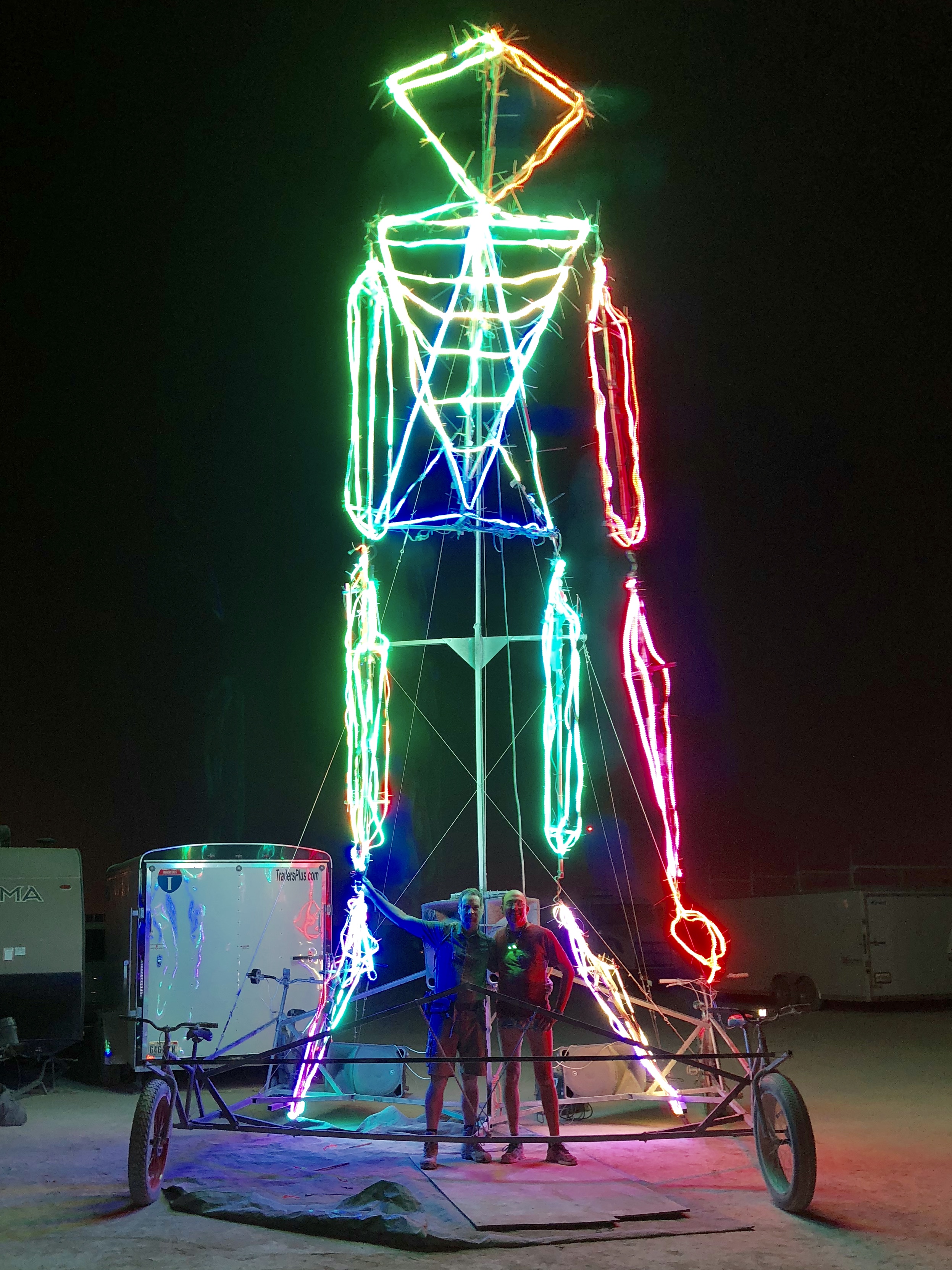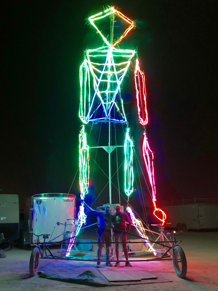 We learned a lot of things in the process of building this mutant ebike. Any art piece you plan for Burning Man is inevitably going to take 10 times longer to build than you think and cost about 50 times as much. In the end, it was worth it, Doug and Larry had an epic burn and the puppet was a big part of that experience. My friend Zoe (who has run pee Funnel camp forever) years ago shamed me for coming to the playa without bringing anything cool, I think her exact words were;