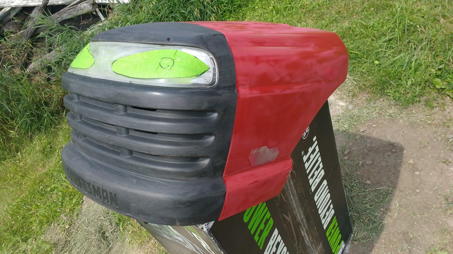 To give your tractor the evil eyes just put down some masking tape, then cut to shape and spraypaint away