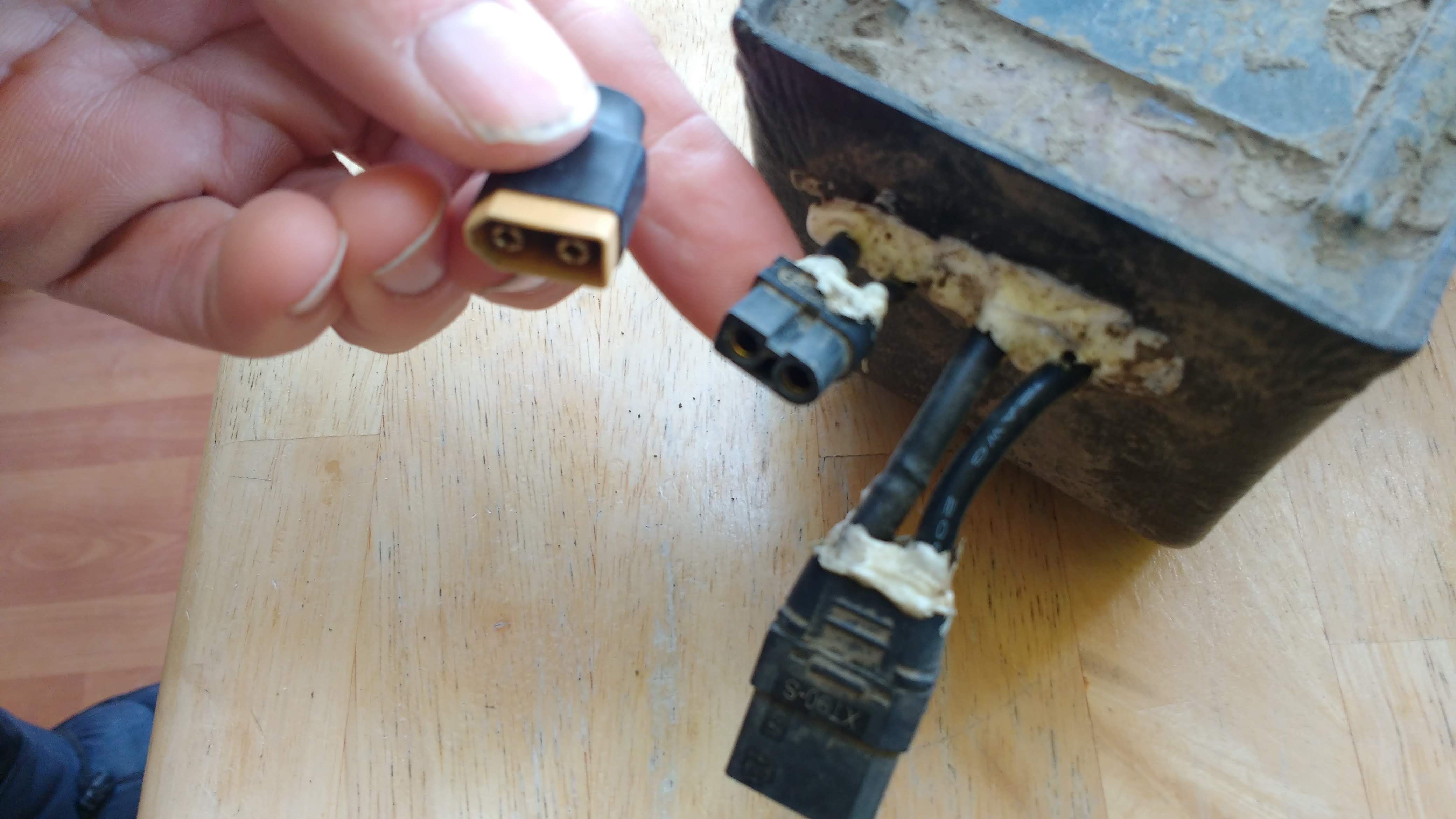 This shows a homemade XT60 cap for a Luna Wolf pack, yes I know it’s dirty, it’s going in the dishwasher soon