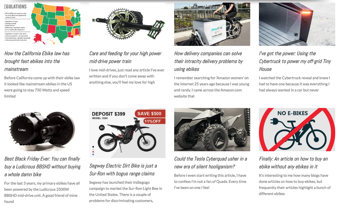 - Post links to my articles on social media to help spread the good word. We want to get the righteous word out there about high speed and high power ebikes and let people know they don’t have to just ride boring crap.