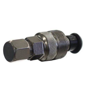 1) Remove the crank arm – There are many different kinds of Bottom Brackets and crank arms. Most are removed in more or less the same way. Usually there is a bolt that is removed and then you need to use a crankarm puller to get the arm off. The crankarm puller threads into the crankarm then you turn the smaller bolt head to ‘push’ the crankarm off. Some newer BB/Crank arm combos have a bolt in the crankarm that is trapped by another nut such that if you loosen the inside bolt first it will push against the outside nut pulling the crankarm off without any special tools. Don’t try knocking the crankarm with force, you will damage something. You must use a puller, they are only about $3.50 on Ebay. Great written instructions on removing cotterless crankarms can be found here. If your bike is very old (pre 1980) you may have a cottered crank which case the removal is far more complicated and is outlined here .