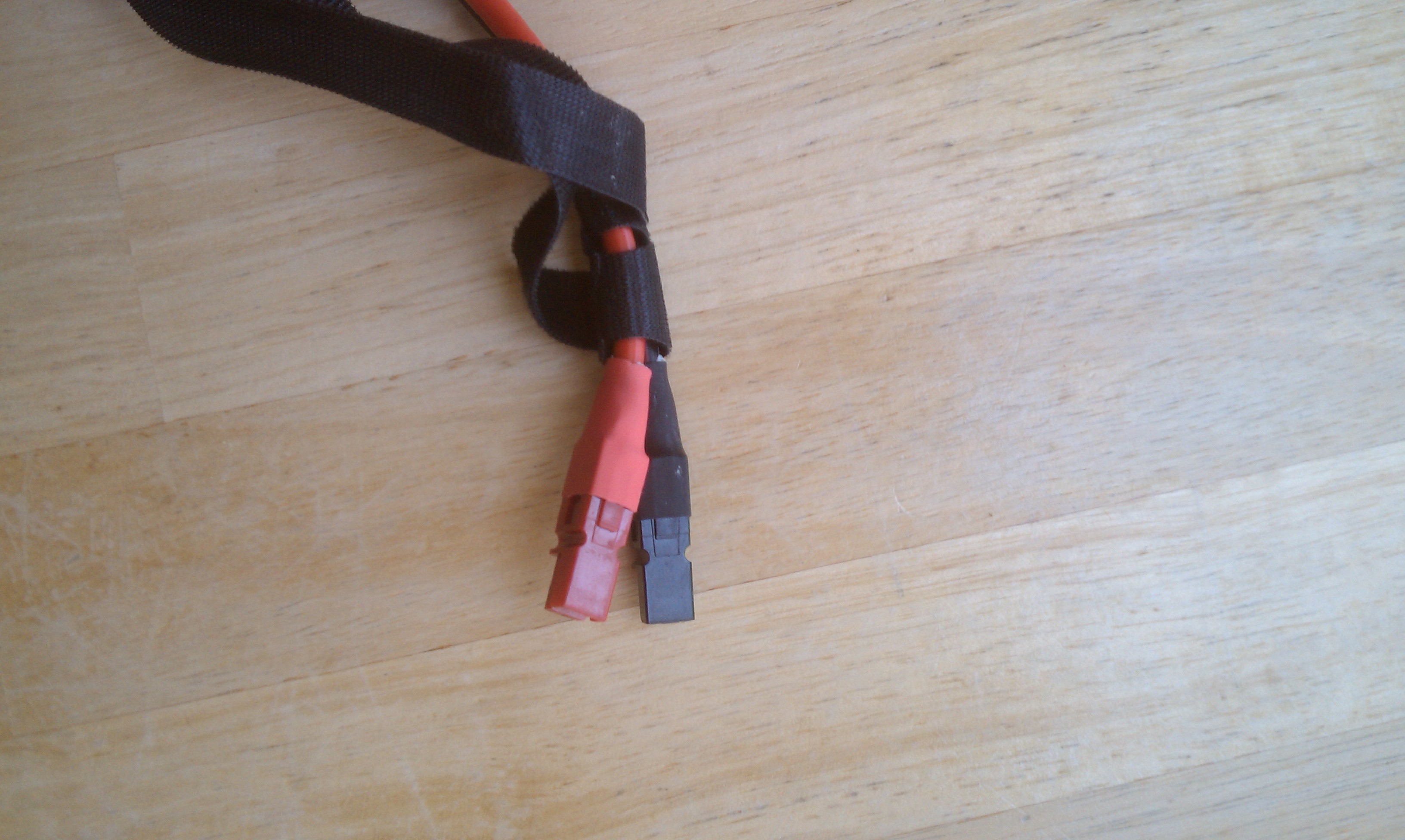 8) Crimp Anderson Powerpole connectors onto the power cables and run 12 Gage multistrand speakerwire to your battery. Anderson powerpole connectors can be had for <$.50 each on ebay. I ususuallyuy from Connecter Pros. You can also get a crimper for ~$30 which you will need to make the connections right. I usually keep the power and ground seperate, install them on different color wires (Red and black) and then I put a little silicone on the crimp, cover it with heat shrink tubing and shrink it down when the silicone is still wet. That makes a nice water-resistant connection. You can use the Velco ONE zipties which are far more attractive and reusable than zip ties. They don’t scratch the frame of your bike, they look attractive and you can move them easily if you need to. I also use the Velcro ONE ties to connect the cable to a battery in my backpack so when I take a header and crash the velcro will easily detach the power cable with no damage to the connectors or the cable.