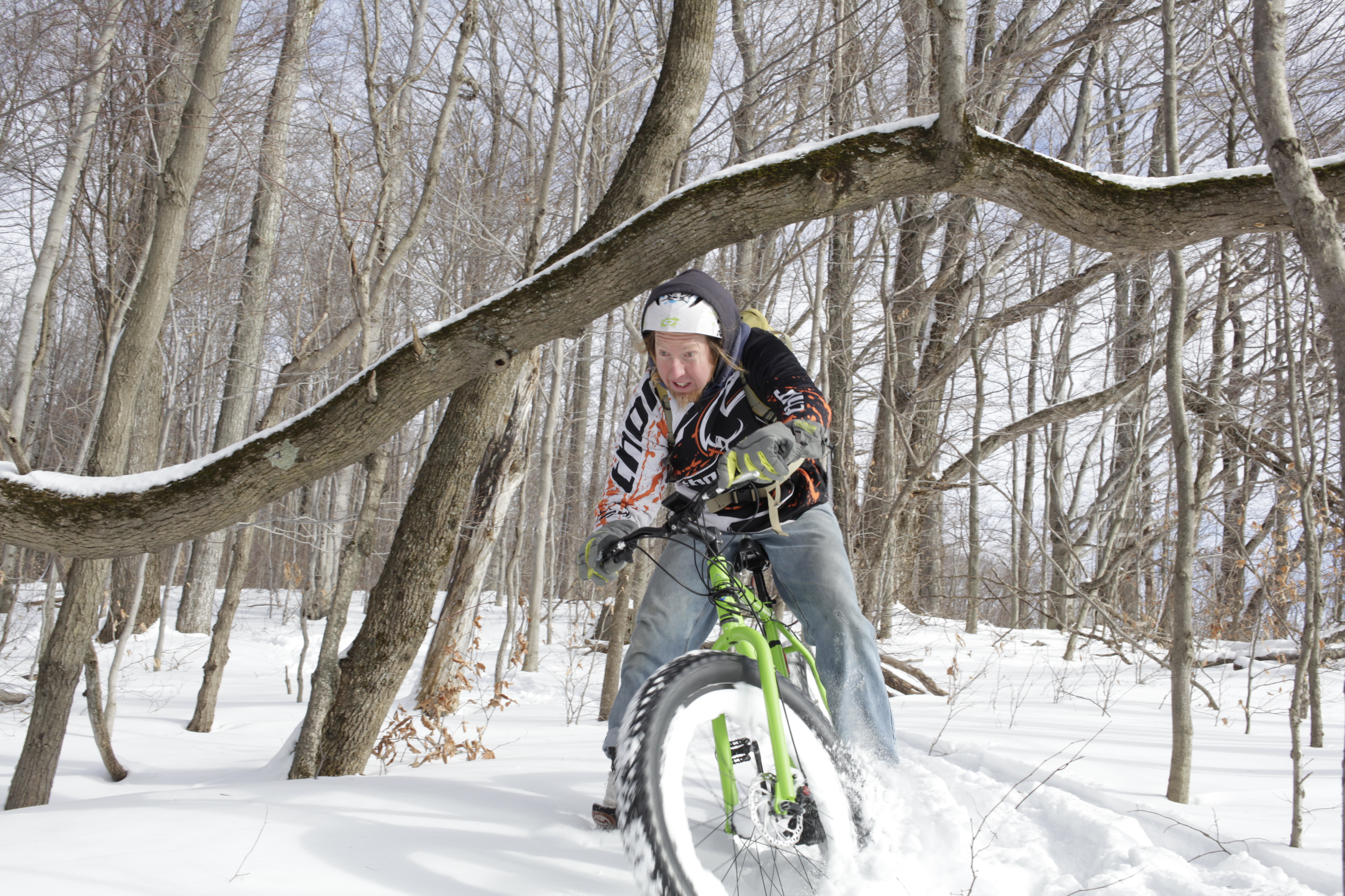One of the first times I took my BBS02 powered bike out in 6 inches of powder I found myself squealing like a 3-year-old girl and spending hours just riding around on my front lawn. There was something about riding in the snow where I felt totally and completely out of control, and it was good. The bike didn’t do what I wanted it to, the back wheel was constantly spinning out and I was left feeling like there was no way in hell I was ever going to be able to ride in that much snow in the woods with so little control.
